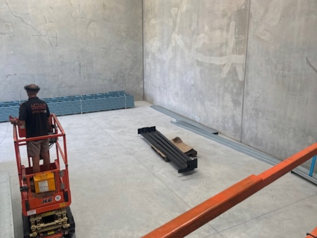 This 110m2 mezzanine was rolled in our warehouse in 1 day & took the boys just 2 days to install, it’s rated to 300kgs per m2 & spans just over 7 metres clear span. Our system can span bigger than most, if you have an area that isn’t being used or running out of space then maybe a mezzanine is your answer.